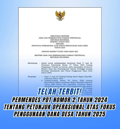 Peraturan Menteri Desa dan Pembangunan Daerah Tertinggal Nomor 2 Tahun 2024 tentang Petunjuk Operasional atas Fokus Penggunaan Dana Desa Tahun 2025