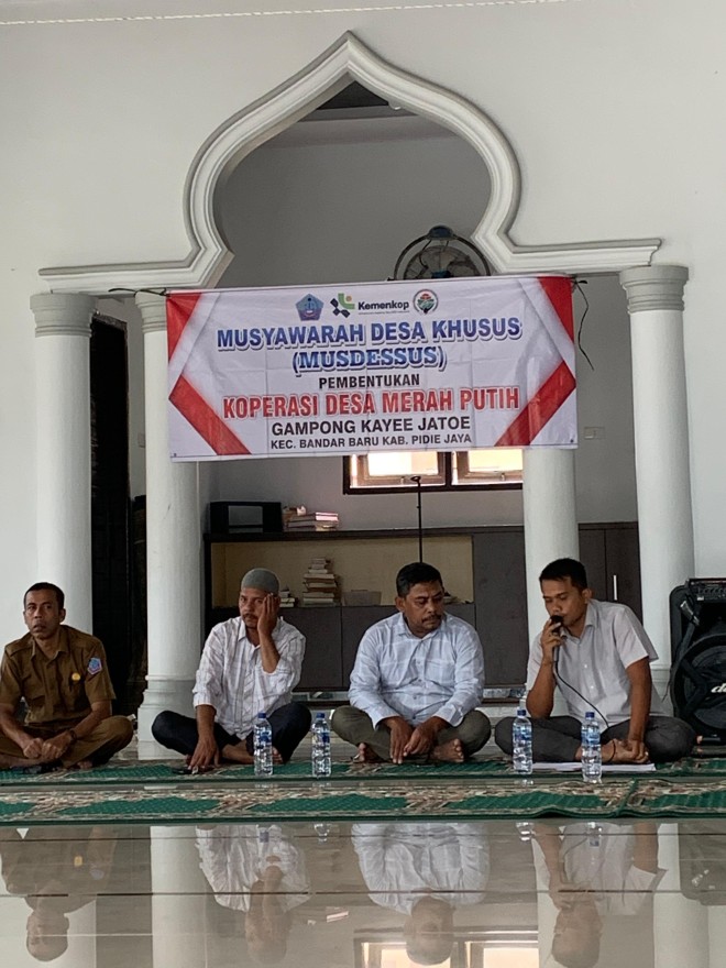 "Alhamdulillah, Musdesus pembentukan Koperasi Desa Merah Putih di Gampong Kayee Jatoe berjalan dengan baik. Kami berharap koperasi ini dapat memberikan kontribusi nyata dalam meningkatkan kesejahteraan masyarakat desa,” ujar Keuchik Desa.